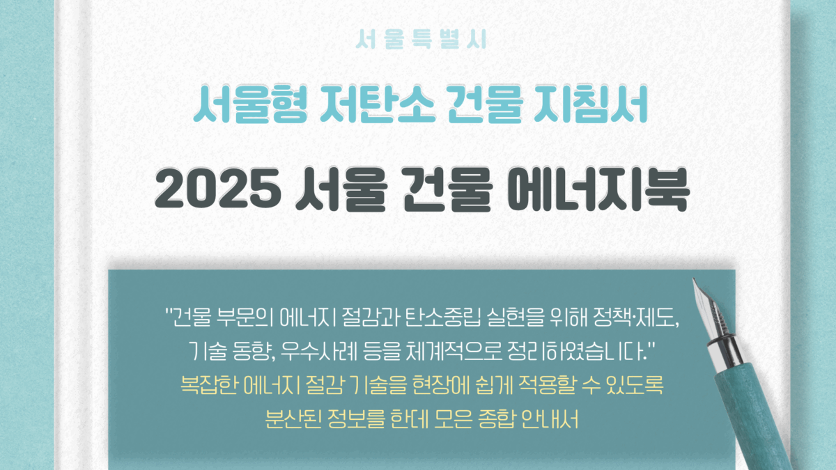 2026-04-17서울시에서 건물 부문의 에너지 절감과 탄소중립 실현을 위해 정책·제도, 기술 동향, 우수사례 등을 체계적으로 정리한 [2025 서울 건물 에너지북]을 발간하여 안내드립니다.
