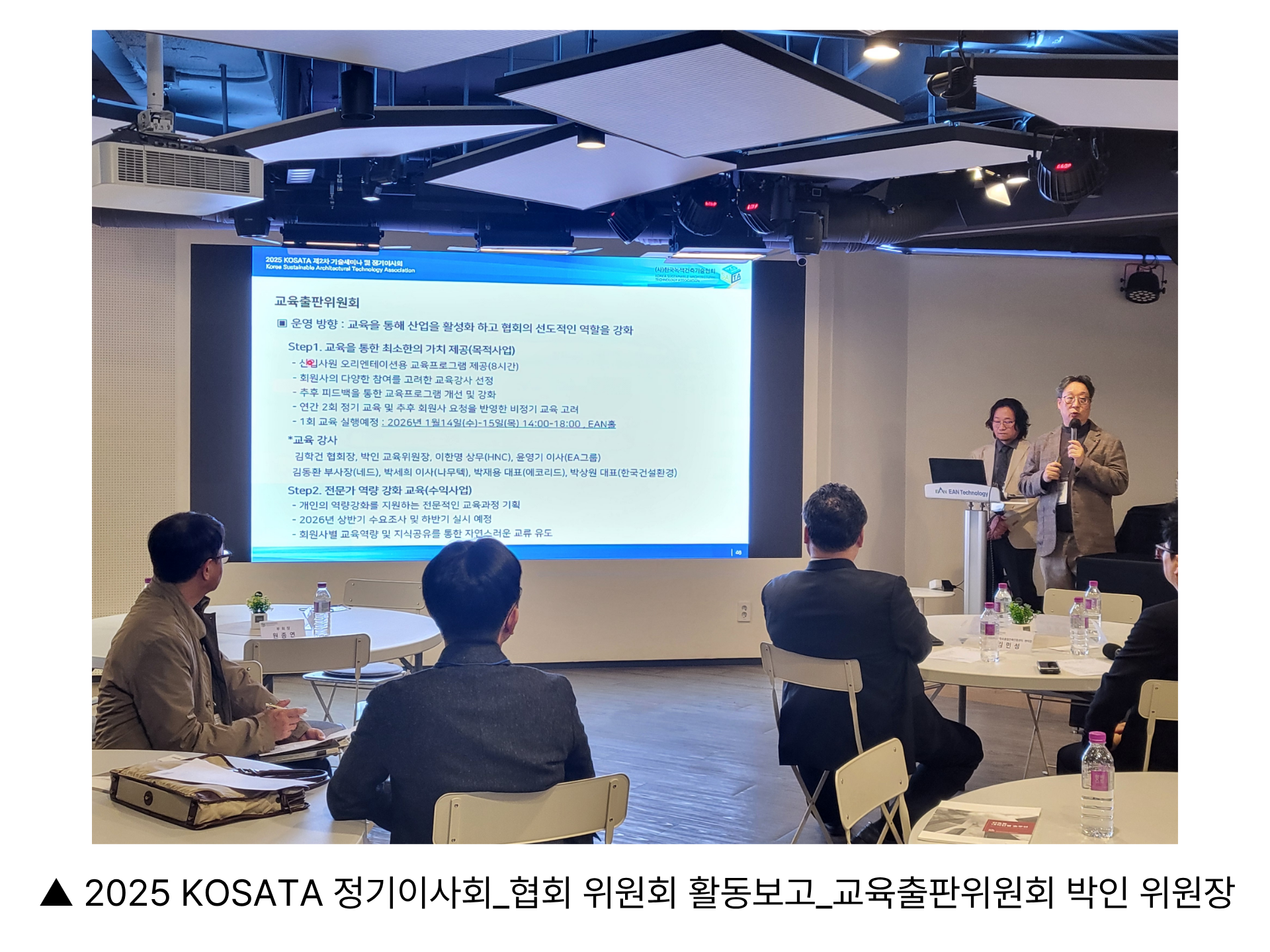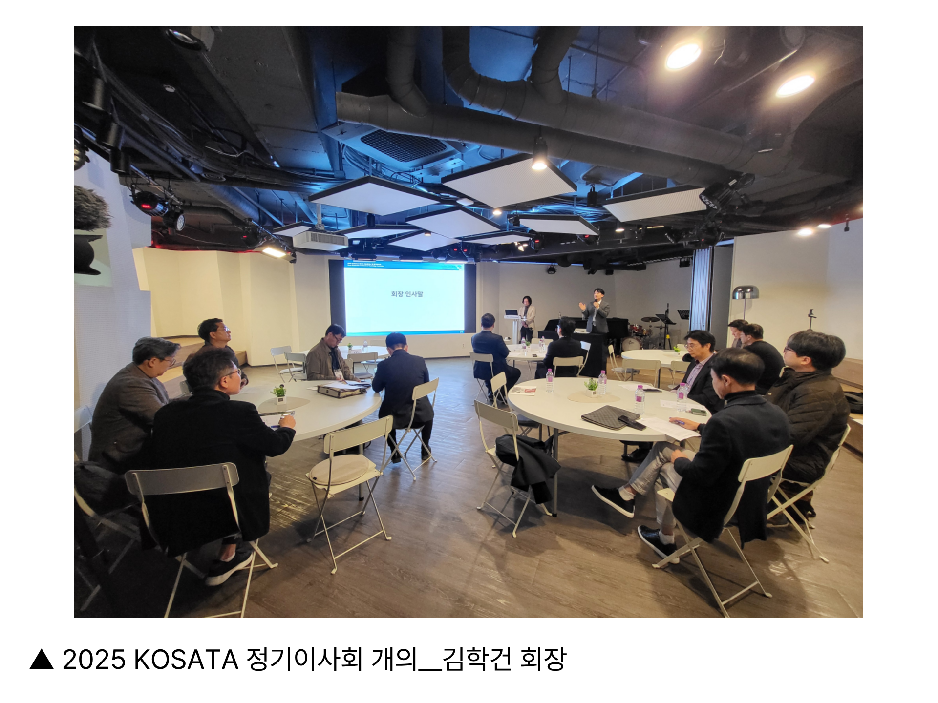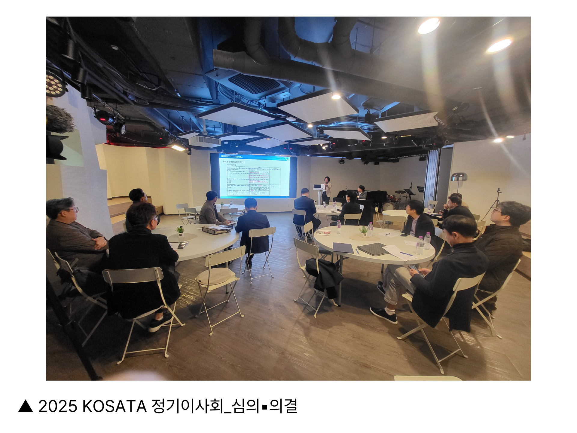 세미나 종료 후 2025 KOSATA 정기이사회를 비공개로 진행하였습니다. 재적이사 과반수 이상 참석으로 정기이사회를 개의하였고, 2025 협회 활동보고, 심의∙의결, 기타 보고 및 공지사항 순으로 진행되었습니다. 아래 심의∙의결사항에 대해 이사회 심의를 거쳐 승인되었습니다.