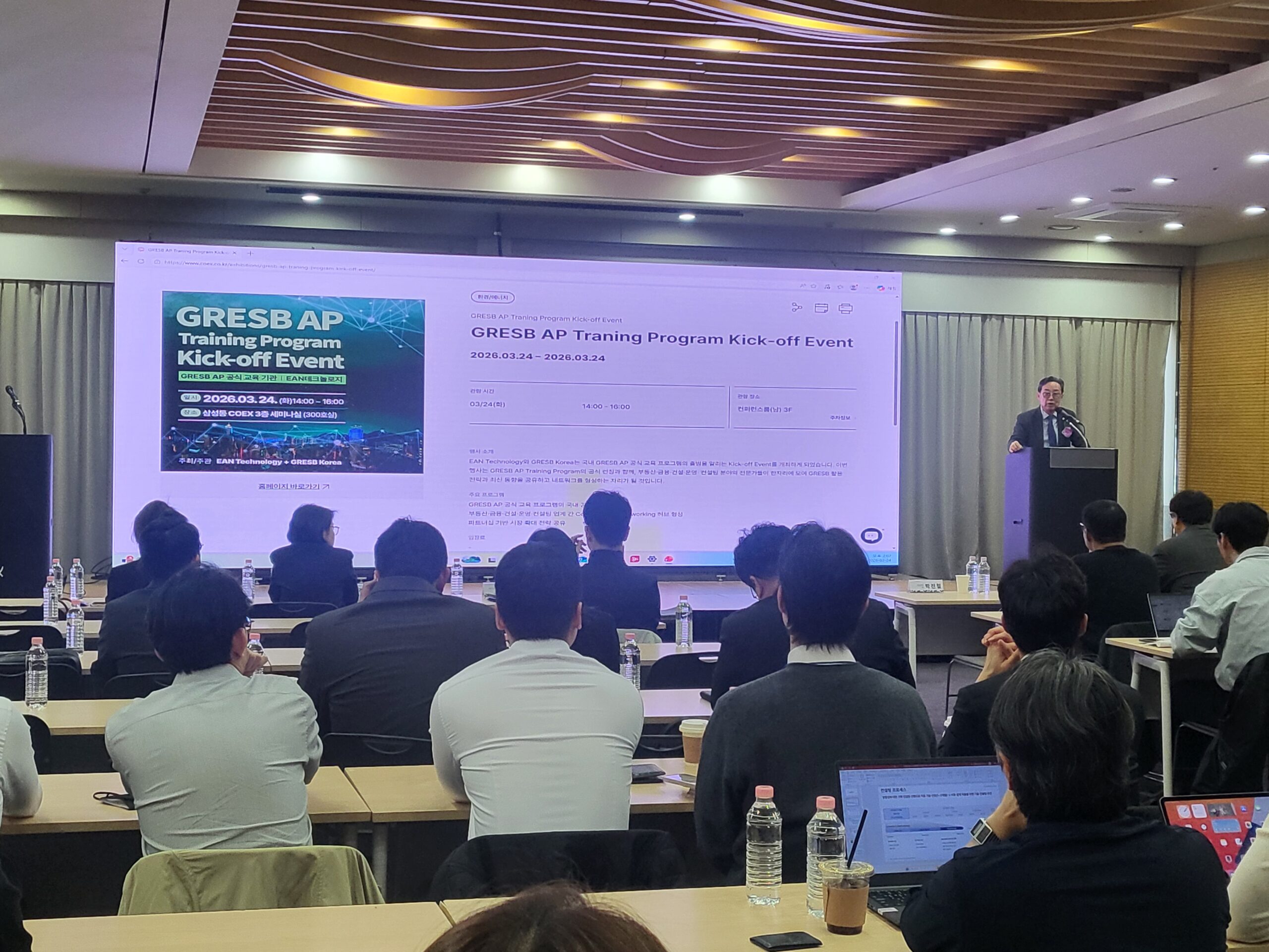 2026-03-12EAN Technology와 GRESB Korea는 국내 GRESB AP공식 교육프로그램의 출범을 알리는 Kick-off Event를 지난 3월24일(화) 삼성동 COEX에서 개최하였습니다. 이번 행사는 공식런칭과 함께 GRESB 활용 전략과 최신 동향을 공유하는 자리가 되었습니다.